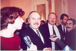 ВыборыМихаил Соколов: Третий съезд движения "Единство" на втором часу работы, лишь при семи голосовавших "против", дружно поддержал предложение своего лидера Сергея Шойгу объединиться с "Отечеством" Юрия Лужкова в одну партию. А через пару часов съезд Союза "Отечества" и "Единства" принял в ряды этой организации движение "Вся Россия" президента Татарстана Минтимера Шаймиева и санкт-петербургского губернатора Владимира Яковлева. Тройственный союз 1 декабря преобразовывается в единую центристскую партию власти. ![]() Юрий Лужков смирил политические амбиции, и, казалось, объединительный процесс автоматически делает Сергея Шойгу первым лицом новой партийной машины. Шойгу начал было в верхах вести себя как вождь партии "Единого Отечества". И вот в субботу Сергею Шойгу пришлось давать соратникам неприятные публичные разъяснения в связи, как он выразился, "с подарком неких сил съезду". Постоянные разговоры о следствии в Министерстве по чрезвычайным ситуациям взбудоражили делегатов. Шойгу утверждал: уголовного дела против него как министра нет, в МЧС - обычные проверки. Общеупотребительная версия: Кремль методично выдавливает из власти старые ельцинские кадры, выдвигая питерцев с чекистским прошлым. Он и дал понять Шойгу: незаменимых героев у России нет. Вождь у страны один - президент Путин. ![]() Вместе со мной в московской студии - наш гость, депутат Государственной Думы, первый зам. руководителя фракции "Союз правых сил" в Думе Виктор Похмелкин. Я хочу начать с темы последних недель, это вот идет процесс такой создания партии власти. "Отечество", "Единство" консолидируются, принимают "Всю Россию". Как вот вам, Виктор Валерьевич, видится эта партия "Единого Отечества", этот блок бюрократии от Лужкова до Шойгу? Это дееспособная политическая сила, и вообще, надолго ли она или она повторит судьбу ДВР, НДР, которые вы тоже видели? ![]() Виктор Похмелкин: Партия власти, то бишь - партия бюрократии, в России вечна, это очевидно. Названия, вывески, люди там, конечно, могут меняться, и будут меняться довольно легко. Беда этой конструкции состоит в том, что она опирается не на каких-то реальных избирателей, на те или иные социальные группы, не на структуру гражданского общества, а на существующий властный механизм. Но, с другой стороны, это и характеризует ее классовую природу, то есть, характер понятен - это бюрократия. Номенклатура, чиновничество, как угодно, то есть, люди, которые находятся у власти либо поддерживают ее. В этом смысле Путин - лидер этой партии до тех пор, пока он президент страны. Если завтра его не изберут, просто про Путина можно забыть. То, что сейчас их всех объединили, это означает, что власть в России сконцентрирована в одних руках. Пока были различные бюрократически группировки, противостоящие друг другу, и не было такой концентрации власти, была возможность, так сказать, существования нескольких партий. Наряду с "Выбором России", которая, кстати, была неоднородной партией, была партия "Единство и согласие" Шахрая, тоже ее люди входили в правительство. Наряду с НДР какое-то время существовало "Отечество", которое не сливалось с ним, наоборот, многие люди из "Нашего дома - России" стали переходить в партию Лужкова, потом появилось "Единство". ![]() А вот сегодня возникла необходимость у бюрократии консолидировать все свои ряды, они начинают пон