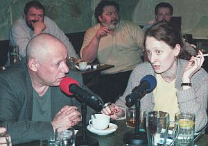 ![]() "Свобода" в ОГИ6-ая международная ярмарка АРТ МОСКВА 2002Автор и ведущий: Елена Фанайлова Елена Фанайлова: Мы начинаем проект под названием "Свобода в ОГИ". "ОГИ" расшифровывается как Объединенное гуманитарное издательство. Это сеть клубов и книжных магазинов, которая распространила свое влияние по Москве. Галерея "Улица ОГИ" участвовала в ярмарке "Арт-Москва", и это является причиной для того, чтобы мы сегодня собрались.