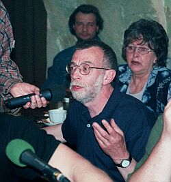 ![]() "Свобода" в ОГИКафе как образ жизниВедущий: Елена Фанайлова Редактор: Сергей Юрьенен Елена Фанайлова: Наши гости: Алексей Кабанов - Генеральный директор "Проекта ОГИ", Алексей Зимин - старший редактор русского издания журнала "GQ" ("Gentleman Quarterly"), Андрей Бильжо - художник, арт-директор клуба "Петрович", Михаил Айзенберг - поэт и литературный критик, завсегдатай клуба ОГИ, куратор поэтической серии клуба "Проект ОГИ", Евгений Митта - художник, совладелец кафе "Клон", и Елизавета Плавинская - куратор галереи "Улица ОГИ". Начну с цитаты: "Когда я бываю в Москве, я всегда захожу в клуб ОГИ на Чистых прудах. Это - мое место. В ОГИ убеждаешься, что социальное сильнее возрастного, и что вкус дороже денег". Игорь Померанцев, из книги "Семейное положение". Книга вышла в издательстве ОГИ не так давно. (Смех.) Я рада, что эта цитата вызвала живую реакцию окружающих. Я бы добавила, что в конце марта здесь прошла презентация книги руководителя русской службы Радио Свобода Марио Корти "Дрейф". То есть все люди собрались здесь неслучайно. Первый вопрос к Алексею Кабанову - генеральному менеджеру ОГИ. Как вам удалось сделать так, что социальное сильнее возрастного, а вкус дороже денег?