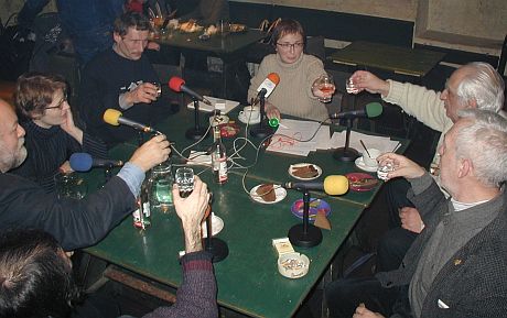 ![]() "Свобода" в ОГИАлкоголь и литератураВедущая: Елена Фанайлова Редактор: Сергей Юрьенен Елена Фанайлова: Наша сегодняшняя тема - "Алкоголь и литература". За нашим столом собрались специалисты по этому вопросу. Это - Александр Павлович Тимофеевский, известный всему советскому народу, как автор песенки Крокодила Гены, и, возможно, в меньшей степени известный - как драматург, сценарист и автор прекрасных стихов. Александр Секацкий - философ из Петербурга, чья сфера интересов - измененные состояния сознания. Катарина Венцль - немка, пишущая по-русски, автор дневника или, если угодно, маленькой повести под названием "Жизнь с алкоголиком, или записки из ЦеКовского дома". Семен Файбисович - художник, деятель современного искусства, писатель, в чьих книгах эта экзистенциальная тема также не обойдена вниманием. И Кирилл Медведев - поэт, переводчик Чарлза Буковски. Во второй части программы мы услышим писателя Андрея Битова, чья книга "Человек в пейзаже" каким-то образом влияла на наши умы, и напомню, что все высокие духовные откровения там происходят в результате двухдневной пьянки героев. Вначале я хотела бы попросить Александра Павловича прочесть несколько стихотворений, которые непосредственно связаны с темой нашей сегодняшней передачи, чтобы у нас был предмет для разговора. Александр Тимофеевский: Я предполагаю, что у меня в этом году должны выйти две шутейные книги. Одна называется "Кулинария эпохи застолья", другая - "Анахренистическая поэзия". Человек предполагает, а Бог располагает. Не знаю, выйдут они или нет, я вот пока на выбор прочту вам несколько стишков из этой книги. Первое такое:
