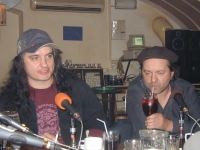 Жан Сагадеев: Я бы ему напомнил о том, что Россия дала миру таких композиторов, как Чайковский, Мусоргский и так далее. У нас сейчас очень много талантливых людей, которые просто пропадают, иногда спиваются, иногда уходят не по своей воле в попсу или в магазины торговать гитарами. Хотя могли бы продемонстрировать всему миру хорошую, качественную музыку, современную, интересную. Дмитрий Чернусь: Очень достойный ответ Жана по поводу... Понимаете, в каком качестве туда прийти? Прибежать на цирлах или прийти и сказать, вот в чем вопрос. Я бы, наверное, постарался бы все же прийти и сказать то, что я думаю. Но вряд ли меня кто-нибудь там стал слушать, другой вопрос. А вообще, конечно, дай бог, что мы здесь так собрались и поговорили, но не будет ли это просто разговор и все? Хотелось бы, чтобы нас действительно могли услышать. Елена Фанайлова: Спасибо, Дмитрий Чернусь, я постараюсь. Дмитрий Добрынин: Сейчас нас, я думаю, слушает большое количество людей, и я бы хотел сказать, что ни в коем случае нельзя тем людям, которые интересуются рок-музыкой, рок-металлической культурой, ни в коем случае нельзя сдаваться, нужно бороться. В конце концов нужно громче кричать "хеви металл"... Жан Сагадеев: Хеви металл!!! Дмитрий Добрынин: Правильно. ...и отстаивать свое право слушать ту музыку, которая его интересует. Александр Хамер: Я бы хотел, чтобы на ребят, которые слушают рок-музыку, играют рок-музыку, наше правительство обратило серьезное внимание, потому что это действительно творчески думающие люди, с которыми можно смело идти вперед и от которых можно ждать каких-то реальных решений. Это первое. А второе, я хотел бы, чтобы люди чаще вспоминали о том, что у них есть родина по-настоящему, не только 33 квадратных метра, а та земля, по которой они ходят, чтобы они берегли ее, украшали, чтобы не сорили, не ломали и уважали друг друга. Елена Фанайлова: Саша, это твой текст для Суркова? Вот этот текст ты бы сказал в администрации президента? Александр Хамер: В общем-то, я всегда говорю то, что думаю. Алик Грановский: Я немножко скажу опять же альтернативно. Не надо ни на кого надеяться, надо надеяться только на себя. Я думаю, если мы будем делать так, как мы сами чувствуем и думаем, в итоге труд все перетрет. |