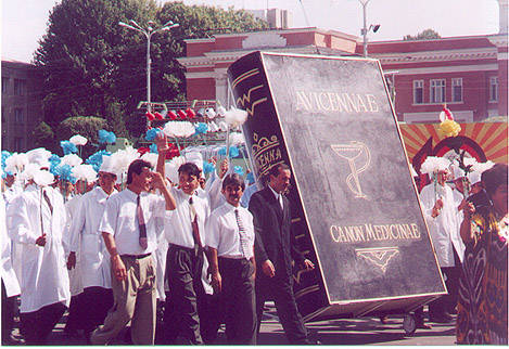 Максим Пешков: Грохнул взрыв. По тем сведениям, которые у меня есть, человек, личность которого сейчас устанавливают, хотя это сделать довольно сложно, - он тащил на себе где-то около килограмма динамита. Судя по всему, как можно предположить, это был камикадзе. Хотя здесь, в Таджикистане, таких случаев зарегистрировано не было. Но, по крайней мере, сейчас следствие идет. То ли у него что-то заело в системе управления, решил проверить, то ли решил просто проверить, все ли в порядке, отошел в сторону и там сам себя и рванул. Мумин Шакиров: И все же торжества удались на славу. Народ, обретя относительный покой и истосковавшись по праздникам, буквально высыпал на улицы таджикских сел и городов. Парады и массовые гуляния продолжались по всей стране целых три дня. Власть провела настоящую социальную терапию. Казалось, что Таджикистан навсегда прощается с гражданской войной.